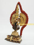 Beautifully Carved Avalokiteshvara made from Copper Alloy with 24 Karat Partially Gold Gilded and has beautifully red painted flame at the back. |