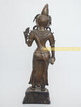 This 15.5” Padmapani Lokeshvara is standing and holds stalk of lotus in his left hand. The right hand, opening outward, is lowered in a gesture of granting favors, which also indicates his readiness to help. Draped over his left shoulder is the skin of a wild deer renowned for its compassionate nature. Among the many forms of AvaLokeshvara, this two – armed, single – faced form called Padmapani which is probably the oldest. AvaLokeshvara is the embodiment of all the Buddha’s infinite compassion.