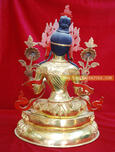 This 19” Green Tara Fully Gold Gilded Sculpture is made from Copper Alloy which is crafted by the experienced artisan of Patan, Nepal who has been in this business for generations.