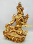 Speciality: This beautifully carved 12.5” Green Tara Statue is made from Copper Alloy 24 Karat Fully Gold Gilded and has beautifully carvings all over the statue.