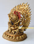 Speciality: Beautifully Hand Carved Copper Alloy with 24 Karat Fully Gold Gilded Chuchepa Mahankala Statue.