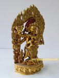 Beautifully Hand Carved quality Copper Alloy with 24 Karat Fully Gold Gilded, this 8.5” Mahankal Sculpture is beautiful piece of art and is hand carved in Patan, Nepal who has been in this business from generations.