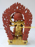 Speciality: Beautifully Hand Carved Copper Alloy with 24 Karat Fully Gold Gilded Mahankal Statue.