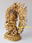 Speciality: Beautifully Hand Carved Copper Alloy with 24 Karat Fully Gold Gilded White Mahankala Statue.