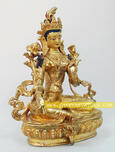 Speciality: Fully Gold Gilded beautifully carved Green Tara statue and has beautifully gold painted face.