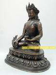 Speciality: Beautifully Carved Oxidized Copper Alloy Crowned Medicine Copper Buddha Sculpture crafted by the master artisans of Patan, Nepal.