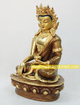 Speciality: Beautifully Hand Carved Crowned Shakyamuni Buddha Statue made from copper alloy with 24 Karat Partially Gold Gilded.
