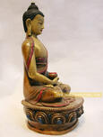 This 8” Amitabha Buddha Sculpture is in Samadhi Mudra with his two palms folded face up on top of the other lying on his lap. When represented on the Stupa, Amitabha Buddha always faces the west. Amitabha Buddha is worshipped thinking that one can have salvation. Sometimes holding a Patra on the same posture.