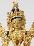 Speciality: Fully Gold Gilded beautifully carved small Green Tara statue and has beautifully gold painted face.