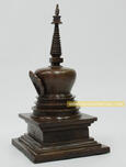 Oxidized Copper Alloy 7.5” Stupa or Chorten made from Copper is beautifully carved with beautiful carvings. |