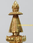 Stupa (Chorten in Tibetan which means "the basis of offering") is an important religious monument in Tibet. This unique religious architectural form expresses significant religious symbolism and presents Buddha's physical presence. It generally consists of three parts; a whitewashed base, a whitewashed cylinder and a crowning steeple or shaft. The square base foundation, representing the Buddha's lotus throne, symbolizes earth, the state of solidity and five forces (faith, concentration, mindfulness, perseverance and wisdom.) The four stepped base may or may not have openings. Above the base is a square or hexagon four stepped pedestal which represents The Buddha's crossed legs. Seated on the base is the cylinder, representing his torso. This symbolizes water, the state of fluidity and seven essential conditions of enlightenment: concentration, effort, equanimity, flexibility, mindfulness, joy and wisdom. Sometimes a Stupa has a shield like grillwork in one face. This allows relics of high lamas, statues and other items to be put inside. Between the cylinder and the crowning steeple, three is a square box, called Harmika, which represents the Buddha's eyes. It is considered to be the residence of the gods, symbolizing the eightfold noble path. The crowning steeple, the Buddha's crown, is usually hand - made of brass and/or covered with gold leaf. It is segmented into 13 tapering rings, a parasol and a twin symbol of the Sun and the Moon. Those rings, representing fire and the thirteen steps of enlightenment, successively symbolize ten powers of the Buddha and three close contemplations. The stylized parasol, representing wind, wards off all evil. At the top of the steeple is the twin symbol of the Sun and the Moon, which represent wisdom and method respectively. A flaming jewel may be found on the top of the twin symbol, symbolizing the highest enlightenment.