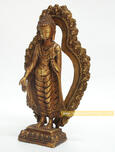 Made from Copper Alloy with 24 Karat Fully Gold Plated, 7” Standing Maitreya Buddha Sculpture is beautiful piece of art made in Patan, Nepal. This 7” Copper Alloy Standing Maitreya Buddha Sculpture with Fully Gold Gilded is antiquated and is beautifully carved.