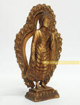 Made from Fully Gold Gilded Copper Alloy with 24 Karat Fully Gold Gilded Standing Maitreya Buddha Statue which is made antiquated and is beautifully carved. |