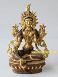 Speciality: Partially Gold Gilded beautifully carved Green Tara Copper statue and has beautifully gold painted face.