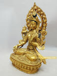 Beautifully Carved Small 9” Fully Gold Gilded White Tara Sculpture is made from Copper Alloy 24 Karat Fully Gold Gilded is cast Lost Wax method and is crafted by our experienced artisan in Patan, Nepal who has been in this business from generations.