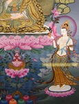 Beautifully Painted 23.5" x 18" Padmasambhava Tibetan Thangka Scroll Painting is painted by the experienced artisans who have been devoted in the business from generations. |