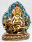 Yellow Kubera, The God of Wealth, he is the manifestation of Buddha Ratnasambhava. The yellow Kubera is yellow in color. Yellow Kubera is adorned with a crown, jewel and gold ornaments and silk garments, seated imperially in the center of the multi-colored lotus throne, stepped on a white conch shell. With left hand in the stoat a jewel keeping in mouth and right hand the morni of gush of flame on the right knee, with the jewel earring and jewel necklace, he is exposing his chest and abdomen, the aura and lucky cloud surrounded on the sides.