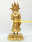 Maitreya's appearance will mark a great turning point in the fortunes of this world. As more and more beings follow his example, their store of merit, and consequently their lifespan, will increase. Eventually people will live in health for such a long time that the sufferings of old age and death will scarcely be known. At that time, their observance of morality will grow lax as people become more and more involved in the pleasures of their existence. With this laxity will come another gradual shortening and degeneration of their lifespan until eventually beings once again will become suitable ripe to take sincere interest in the spiritual path. When the human lifespan as increased again to many thousands of years, and when the planet will be entirely dominated by a benevolent wheel turning sovereign (Chakravartin) named Shankha, it is at this time that Maitreya Buddha will descend from the Tushita Buddha field (devaloka) where he now resides, to appear in this world as the fifth founding Buddha of this world age. Maitreya will be born the son of a Brahmin priest, and will renounce the world and attain enlightenment in a single day, not requiring six long years. The world in this time will be politically neutralised, and therefore the warrior class and its martial virtues will be obsolete. Thus he will be born among the intellectuals, the priests, and his teaching will bring the gentler emotions to the fore. Maitreya Buddha is supposed to be passing the life of a Bodhisattva in the Tusita (Tushita) Heaven preparatory to his descent to earth in Human form. It is said that he will come to earth full 4000 years after the disappearance of Gautam Buddha for the deliverance all sentient beings. Maitreya may be represented as a standing figure adorned with rich ornaments and holding in his right hand the stalk of a lotus. Maitreya may also be represented seated as a Buddha, with legs either interlocked or dangling down. His color is yellow, and his images sometimes bear the figures of Dhyani Buddhas.