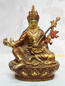Hand Carved 8.75” Guru Padmasambhava Statue or Sculpture made from Copper Alloy with 24 Karat Partially Gold Gilded hand carved and made in Patan, Nepal.