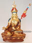 In this 8.75” Guru Padmasambhava Sculpture, Guru Padmasambhava embodies the ultimate attainment of the Vajrayana and the power, both temporal and spiritual, associated with this peerless attainment. These powerful attributes show Guru Rinpoche wearing an expression of great force and concentration while holding various implements of power such as the Vajra scepter, skull – cup and trident staff called Kathvanga. His right hand brandishes a Vajra, while the left hand, resting on his lap, supports the Vase of immortality. Guru Rinpoche is dressed not only in the robes of a monk but also in the garments of a king to indicate that Guru Rinpoche is a member of both worldly and religious royalty. |