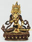 Aparmita is the name given to Amitabha in his character of bestower of longevity. Aparmita may be turned either a Crowned Buddha or a Bodhisattva and is therefore richly clad and wears the thirteen ornaments. His hair is painted blue and falls on either side to his elbows or may be curiously coiled. Aparmita is seated like Buddha and his hands lie on his lap in Dhyana Mudra holding the ambrosia vase, his special emblem. The vase is richly decorated and from the cover fall four strings of beads which represent sacred pills. In the preliminary worship, the pills made from buttered dough and the ambrosia brewed from spirit or beer and offered in a skull bowl to the great image of Aparmita. The lama then places a vajra on the ambrosia vase, which the image of Amitayus holds in its lap, and applies a cord, which is attached to the vajra, his own heart. The wine in the ambrosia vase is then consecrated and the people partake of it as well as of the sacred pills with the firm conviction that there lives will be prolonged through their faith in Aparmita.