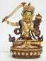 Made from high quality Copper Alloy with 24 Karat Partially Gold Gilded, this 5.5 Manjushri Sculpture is beautiful piece of art and is hand carved in Patan, Nepal. This 5.5 Copper Alloy Manjushri Sculpture with Partially Gold Gilded and is beautifully decorated with semiprecious stones.